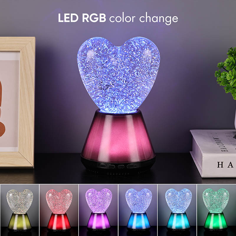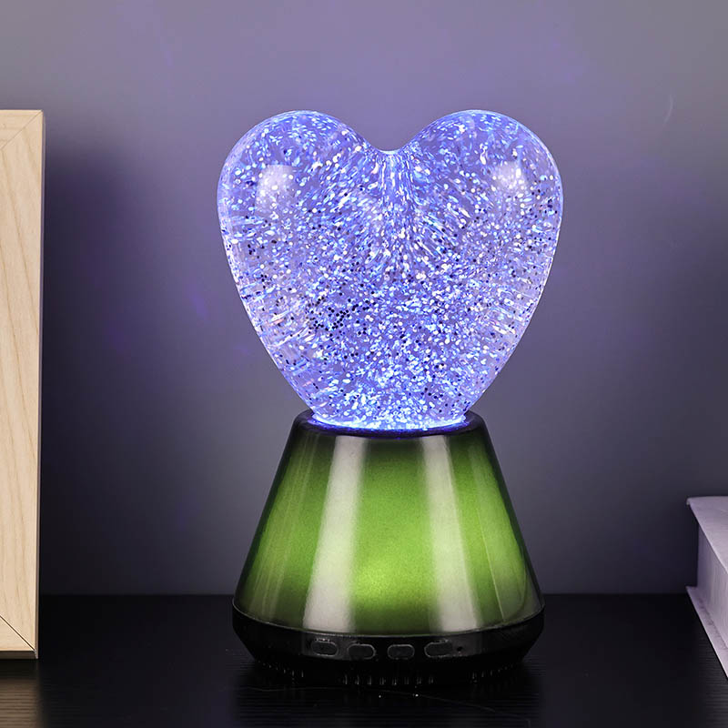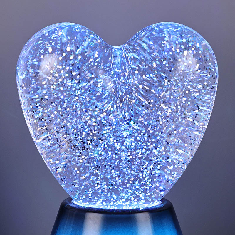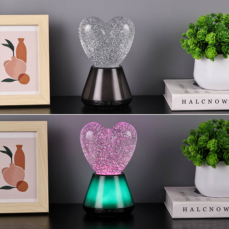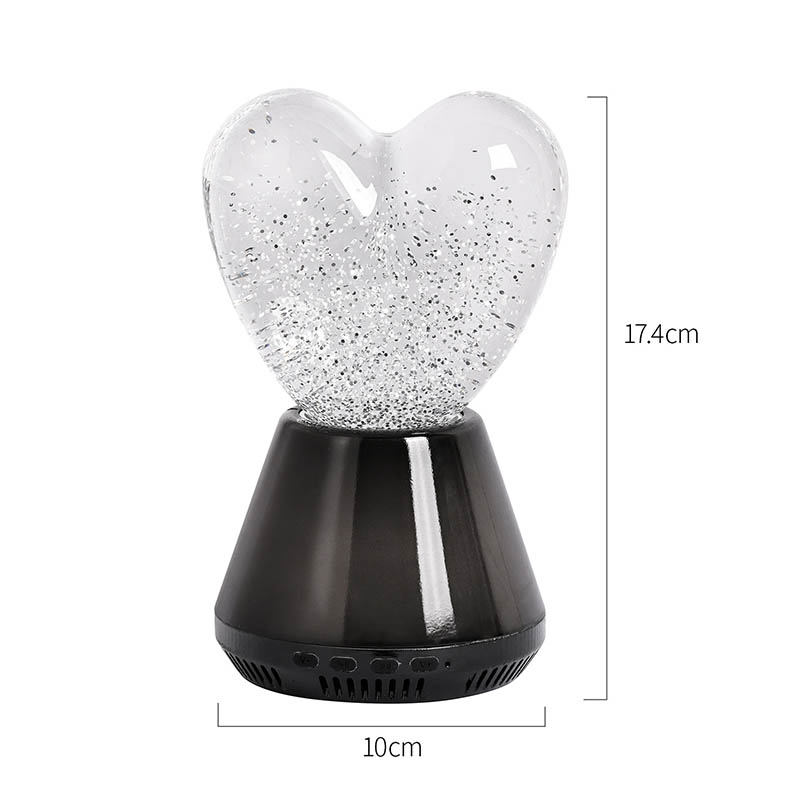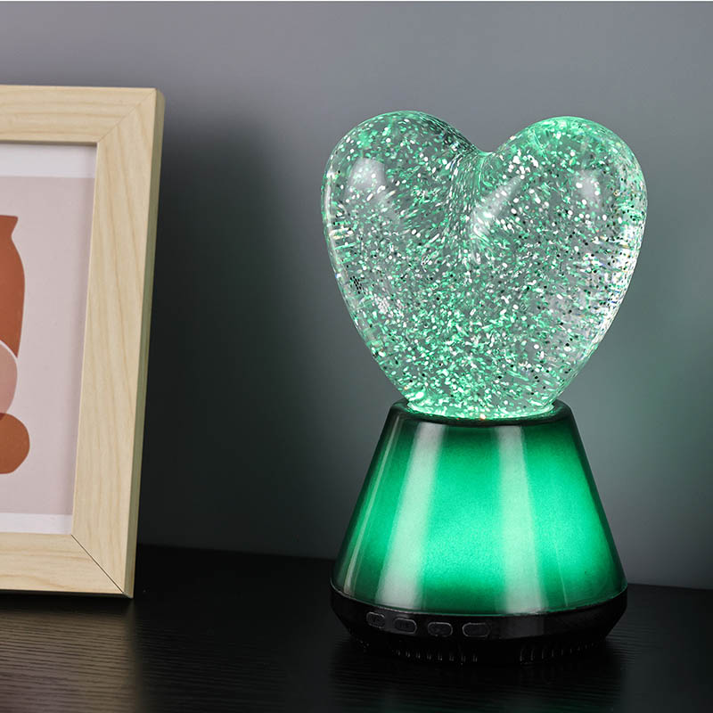 Внутрішня частина світлодіодного нічника з блискучим серцем з управління Bluetooth наповнена таємничою рідиною, в якій плавають незліченні блискучі блискітки. Коли лампа вмикається, рідина повільно ллється всередину скляної кулі у формі серця, створюючи ефект мрії. Ці блискітки здаються розсипаними зірочками, м'яко плаваючими в рідині, створюючи відчуття перебування на зоряному небі. Незалежно від того, день чи ніч, із відтінком у формі серця він може принести дітям здивування та радість, дозволяючи їм дати волю своїй уяві в мрійливому освітленні.