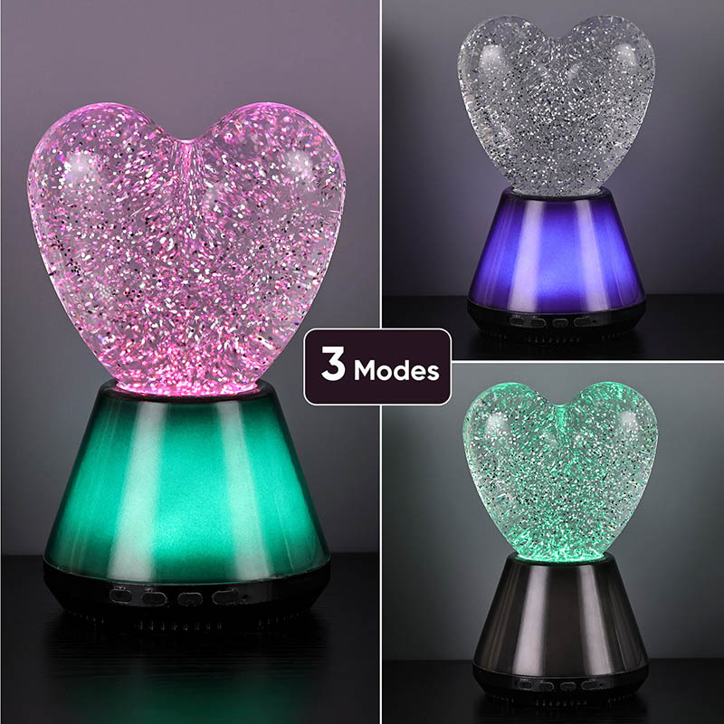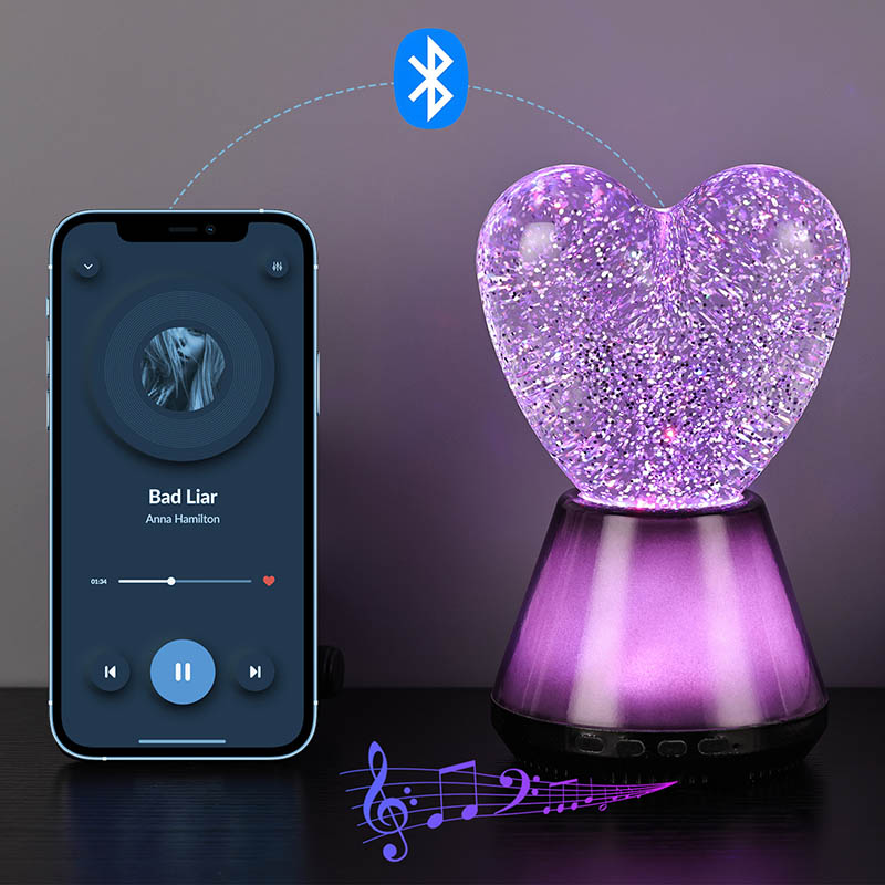 Світлодіодний нічник із блискучим сердечком із керуванням Bluetooth, який поєднує в собі дизайн у формі серця, відтворення музики через Bluetooth, безпечний і надійний пластиковий матеріал, потік рідких блискіток і перетворення кольорів, — це особливий подарунок для дітей. Це не лише практичний нічник, а й чарівний витвір мистецтва, який дозволяє дітям насолоджуватися однією прекрасною ночею за одною в теплому освітленні та чудовій музиці.