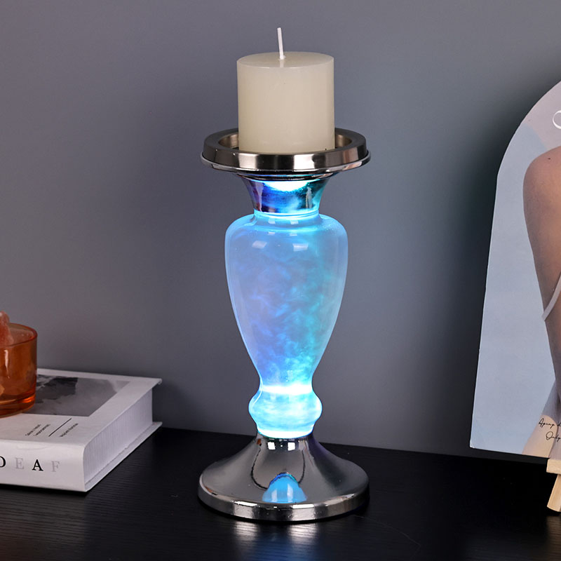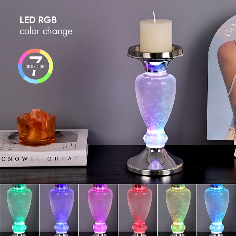 Нещодавно розроблений хмарний нічний світильник зі свічкою в європейському стилі має декоративну свічку вгорі, яку можна запалити для підсвічування, і прозору скляну пляшку в середині, яка містить рідину зі спеціальною формулою. Усередині рідини це виглядає як хмари та туман, що ширяють у небі, дуже схоже на роботу з моделювання. Дно - це металева основа, яку можна використовувати з 3 батарейками типу ААА. Хмарний нічний світильник зі свічкою дуже підходить для внутрішнього чи готельного декору, а також може бути розміщений у дитячих спальнях, з хорошим лікувальним ефектом для настрою
