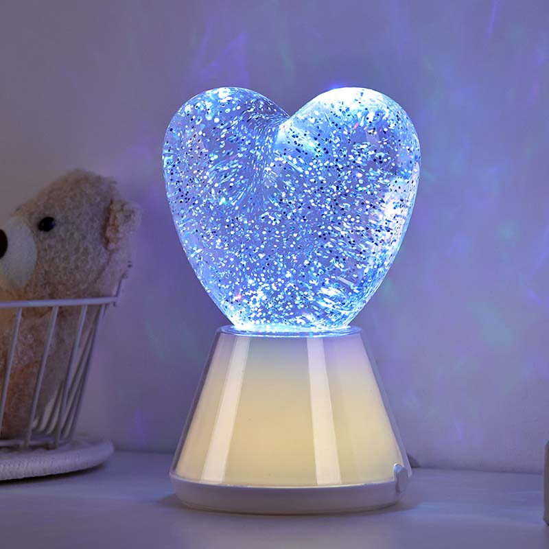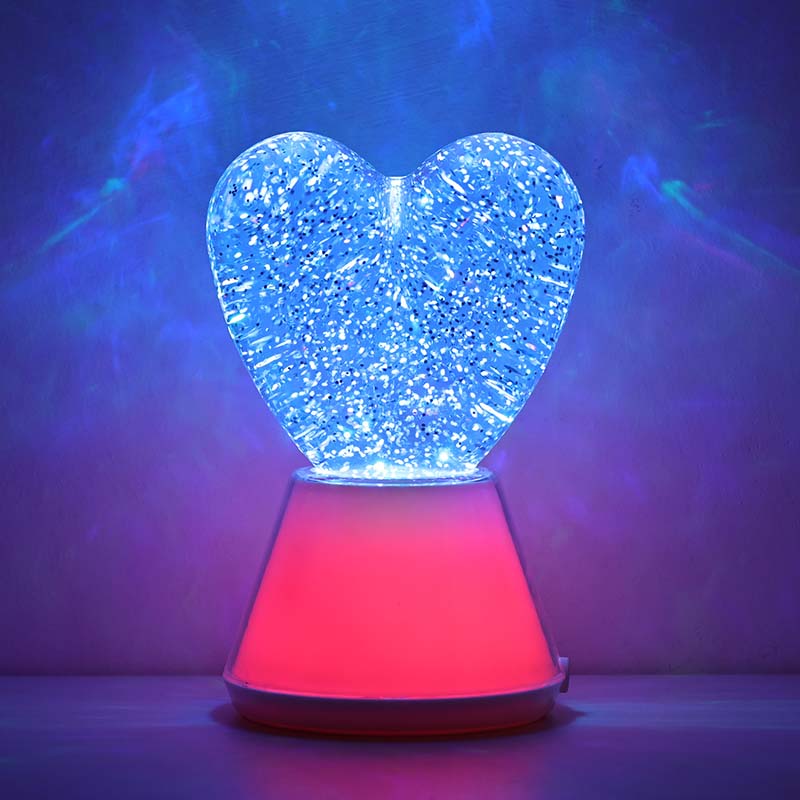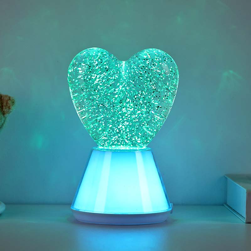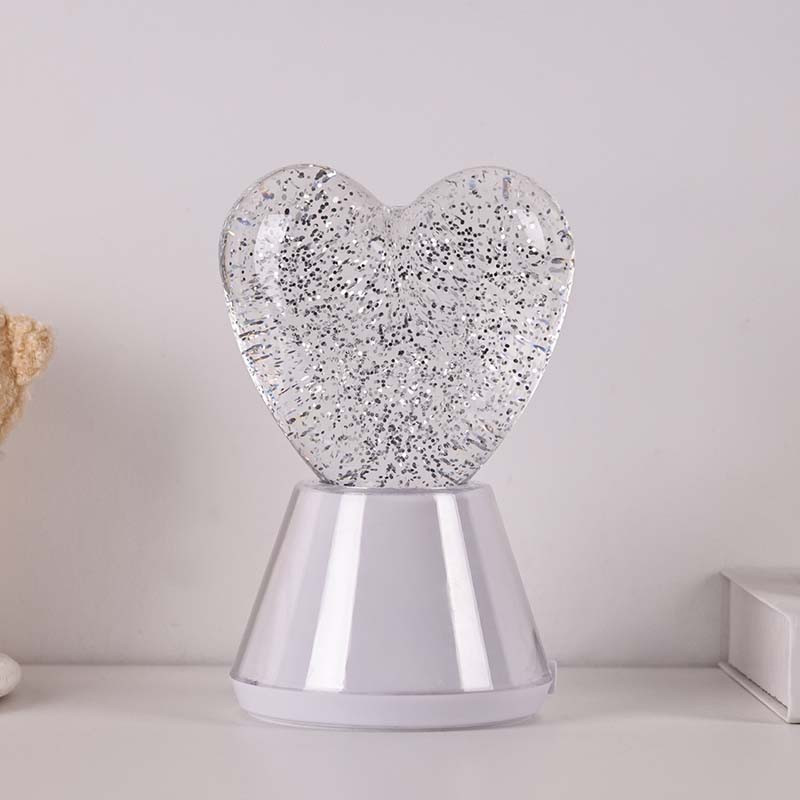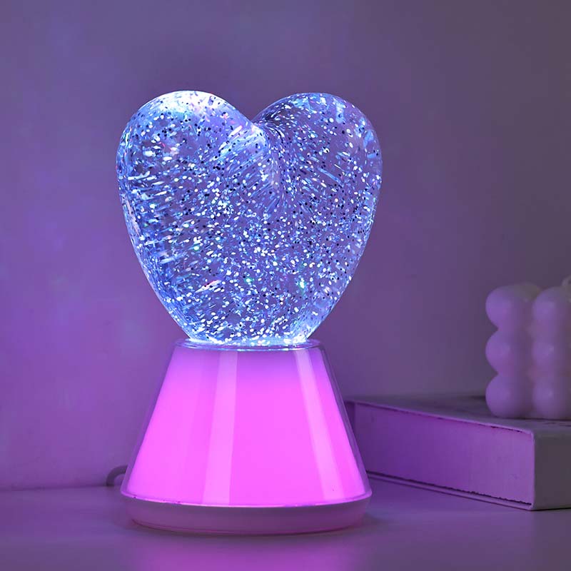 Нічник із рідким блиском, що змінює колір, із абажуром у формі серця. має вишукану скляну кулю, наповнену таємничою рідиною, в якій плавають мерехтливі блискітки. Дивовижно змінює колір рідкий блискучий нічник із серцевим відтінком наче танцює в чарівному світі.