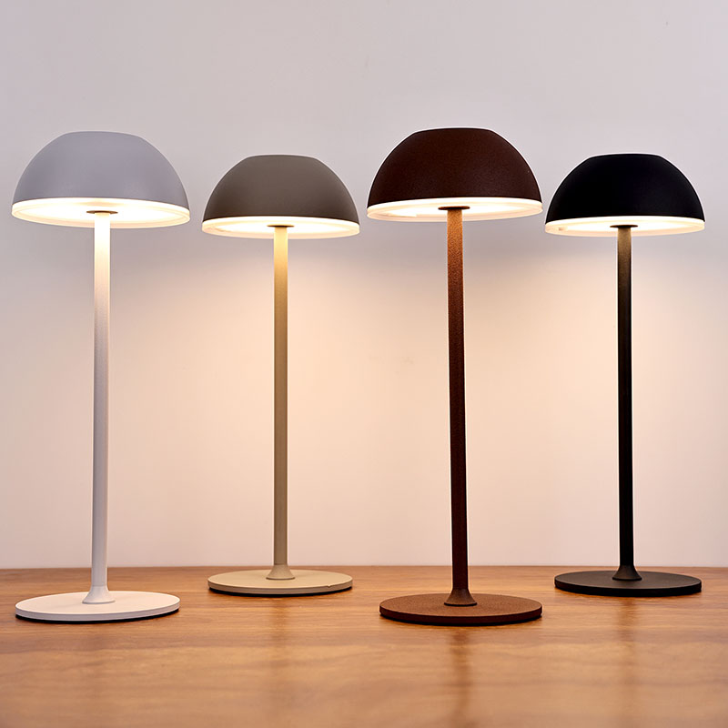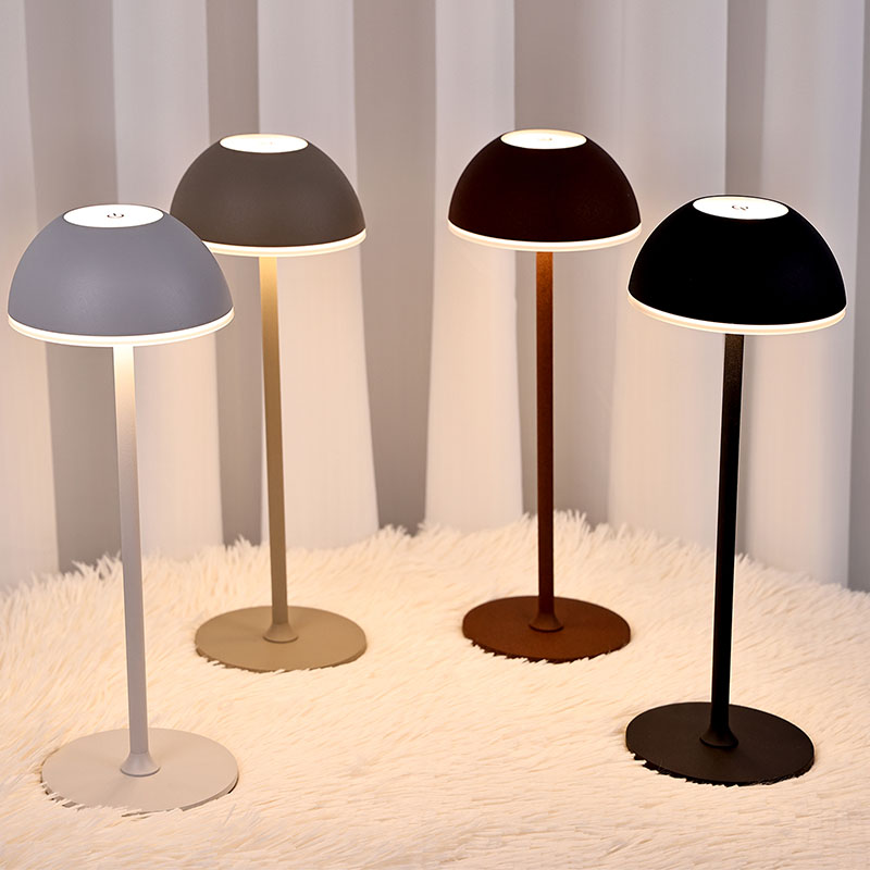 Грибоподібна настільна лампа з акумулятором має простий дизайн, що нагадує форму гриба, що дуже підходить для прикраси приміщення або кафе. Настільна лампа Гриб з батарейкою виготовлена з двох матеріалів: металу та пластику. Металеві матеріали мають набагато кращу текстуру, але ціна значно вища, тоді як пластикові матеріали дешевші, але якість відносно хороша. Цей продукт є нашим запатентованим продуктом. Якщо настільну лампу Mushroom з акумулятором було оновлено до другого покоління, металеву основу та корпус лампи в нижній частині можна розібрати для кращих шнурівок. Настільна лампа Mushroom з батарейкою складається з трьох типів світла: теплого кольору, природного кольору та білого. Кожен тип світла може регулювати інтенсивність світла та використовуватися в різних середовищах
