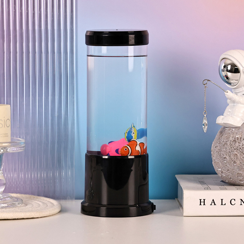 Представляємо захоплюючу світлодіодну лампу «Риба» — приголомшливе поєднання сучасного дизайну та водного шарму, яке приносить магію підводного світу у ваш дім. Цей декоративний світильник із гладким чорним корпусом, елегантною циліндричною формою та захоплюючим внутрішнім рухом — це більше, ніж просто освітлення.