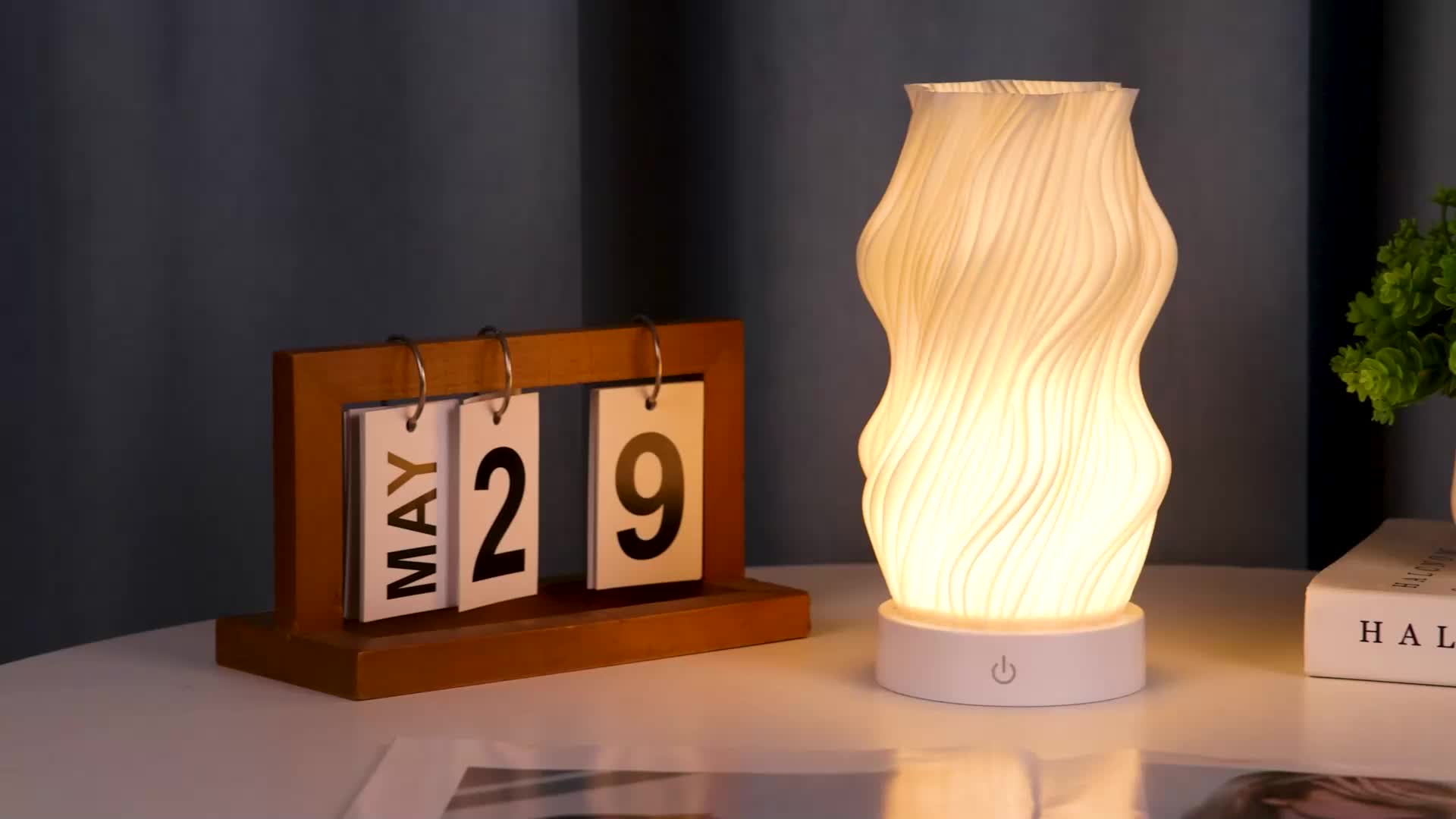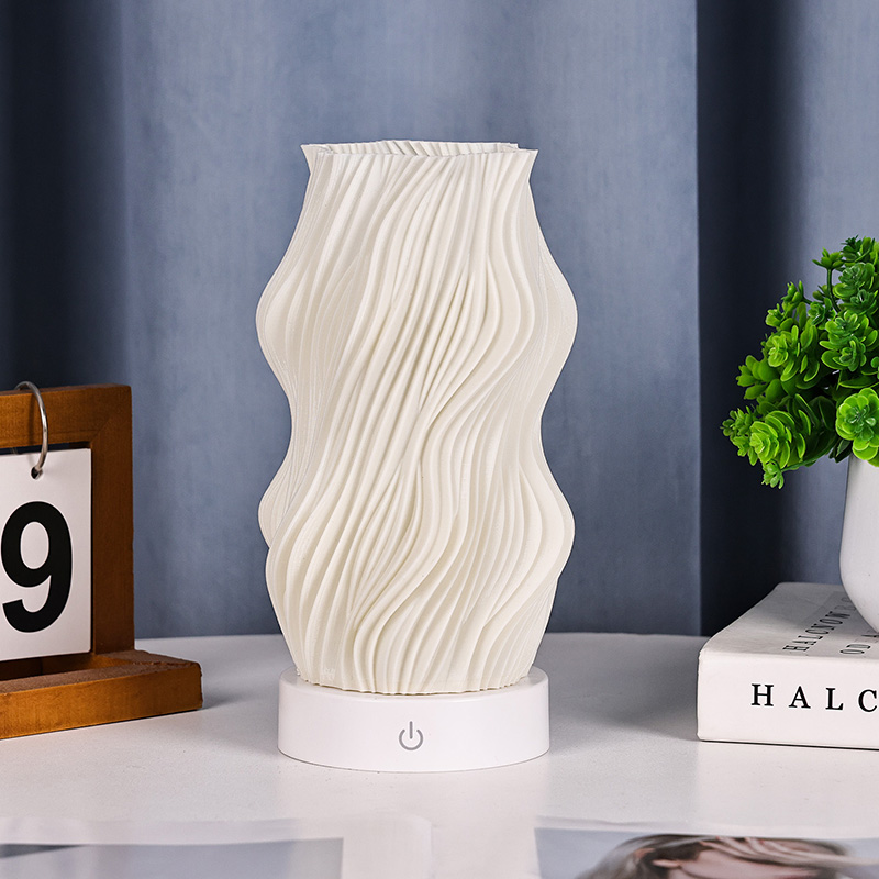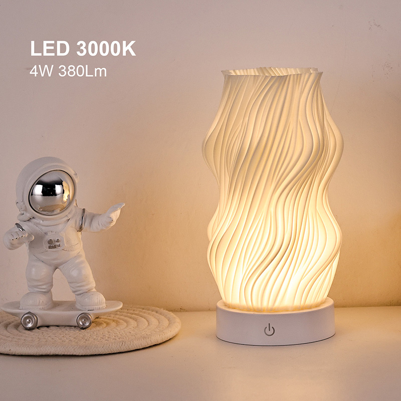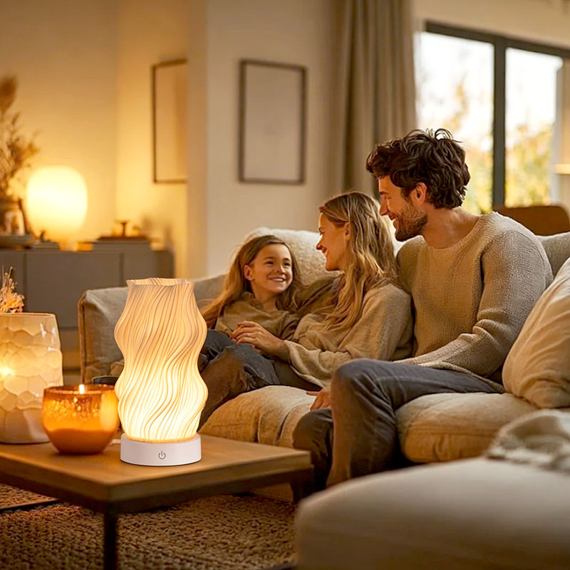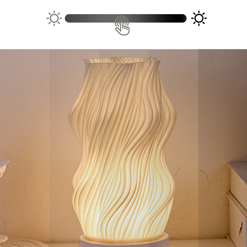 Виготовлений із високоякісного пластику, корпус настільної лампи Flame Night Light є (компактним) і легким. Він не тільки теплий на дотик, але його також легко чистити та переміщати. Мінімалістичний хвилястий дизайн текстури поєднує художню красу з практичністю, легко вписуючись у будь-який стиль домашнього декору. Це ідеальний акцент, який заощаджує простір і додає вашій кімнаті нотку елегантності.
