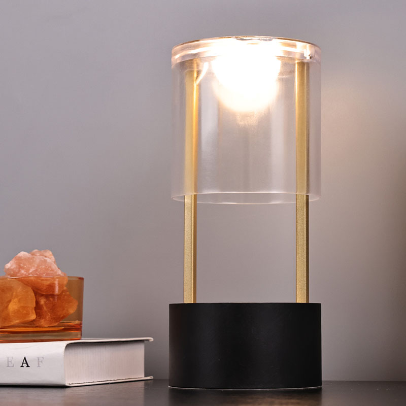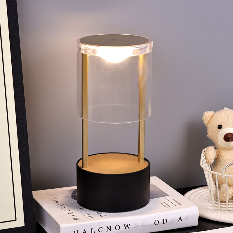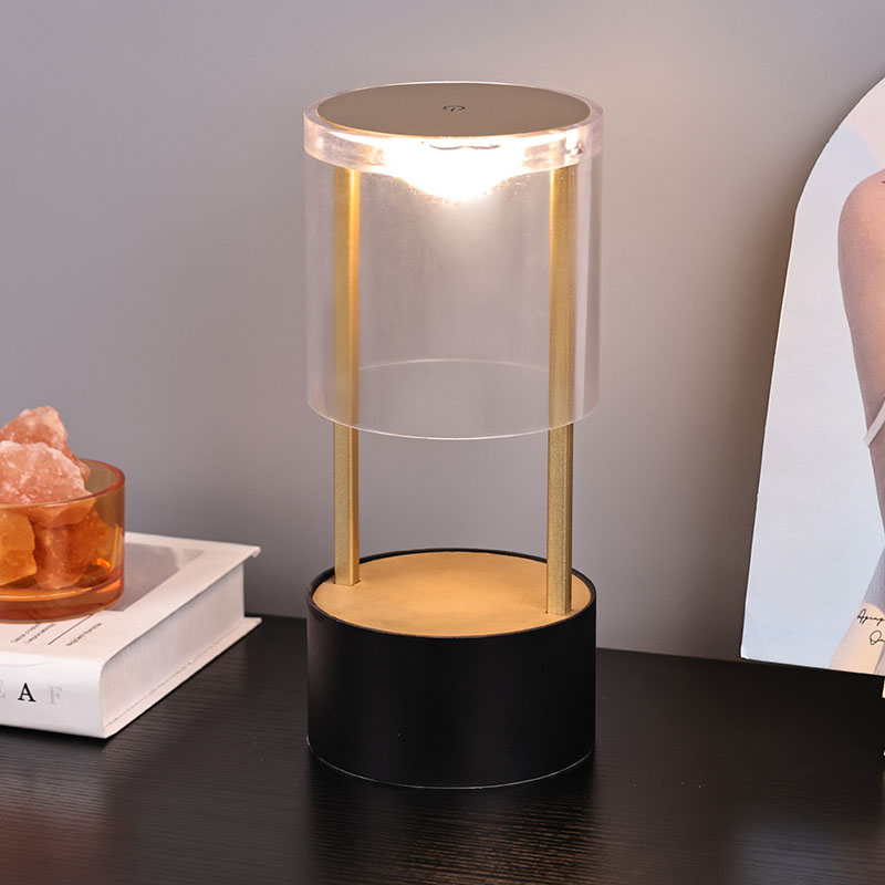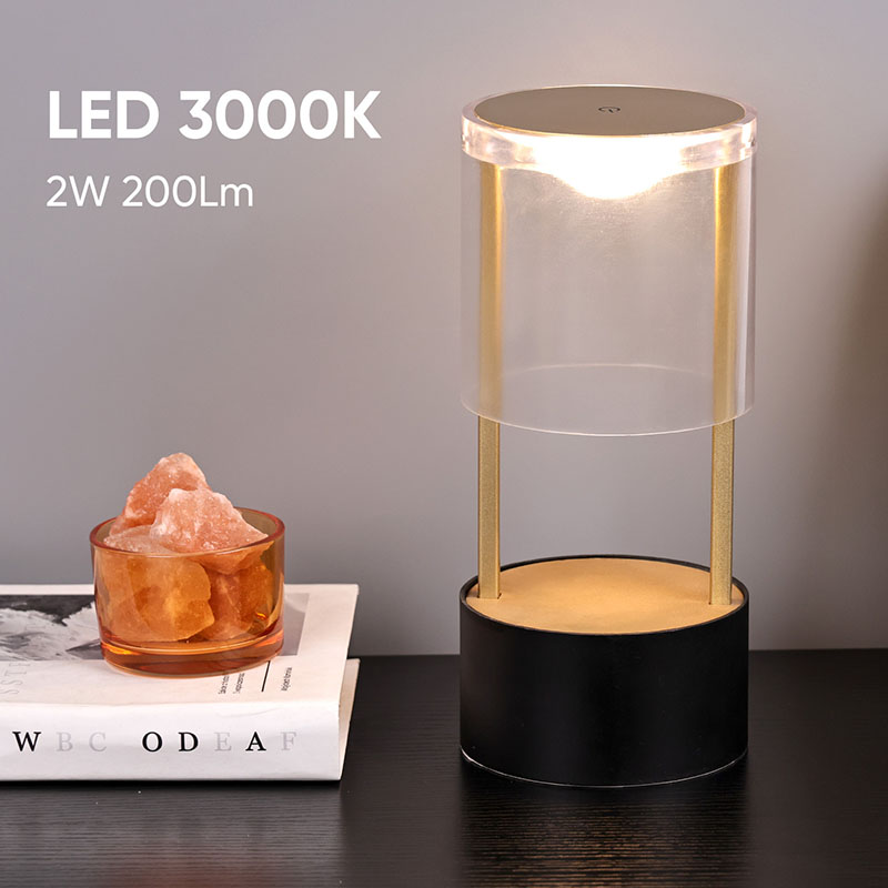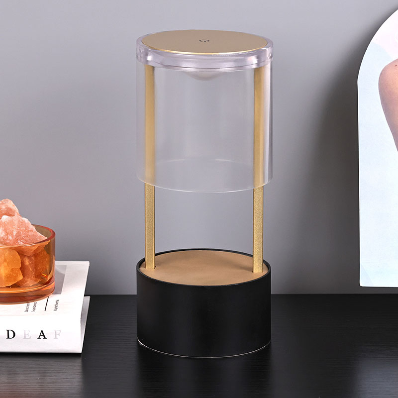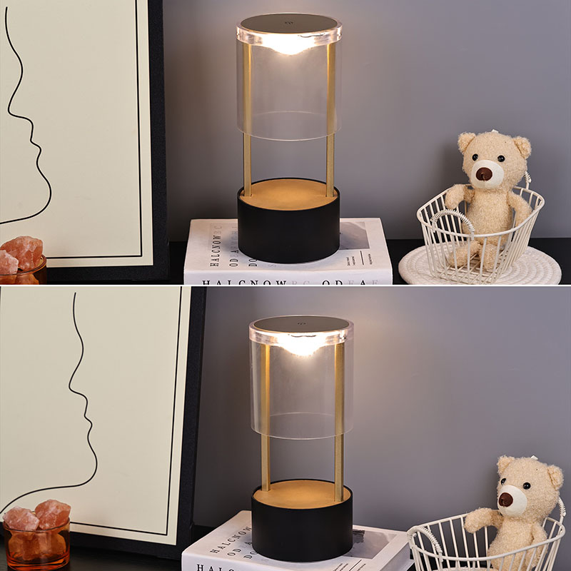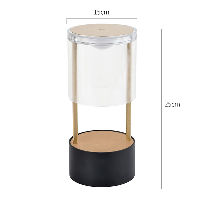 Верхня частина маленької настільної лампи в стилі ліхтаря – це сенсорний вимикач світла з зарядною головкою типу C, яка перезаряджається внизу. Верх складається з прозорого акрилового покриття, а низ - металева основа. Загальна кругла структура дозволяє використовувати рухоме освітлення