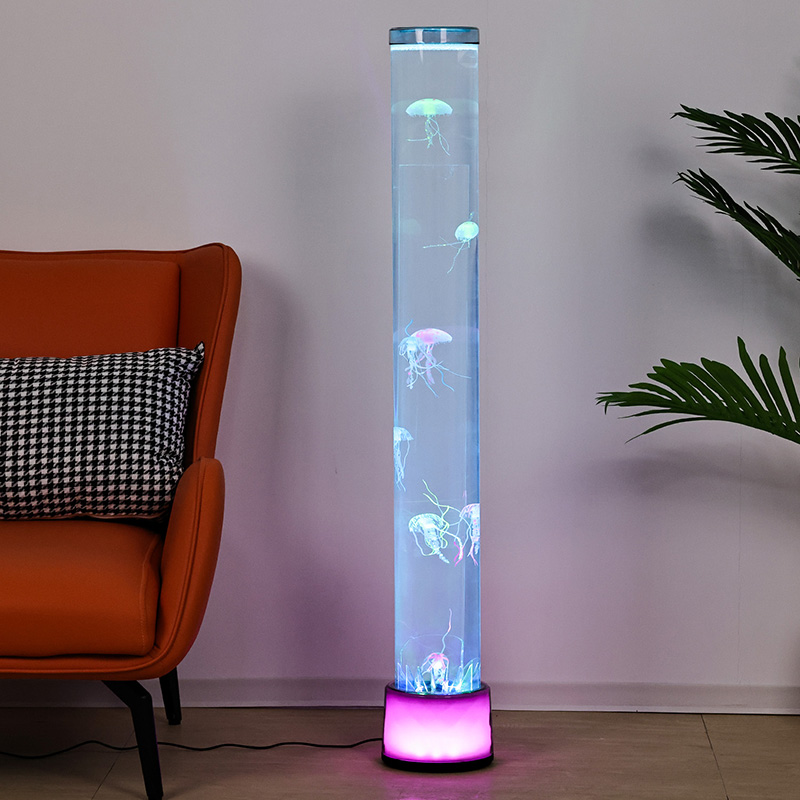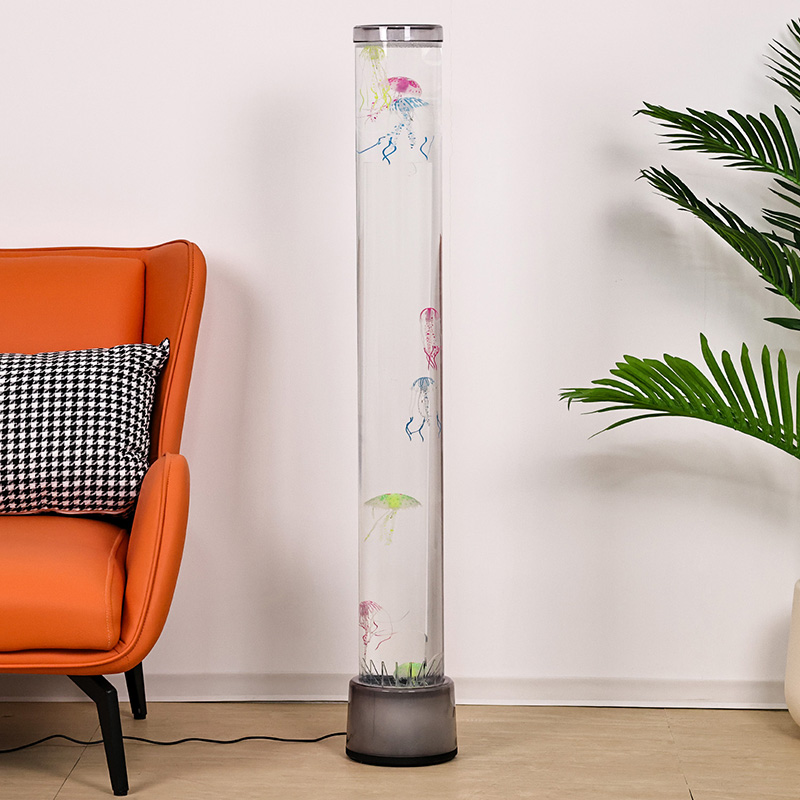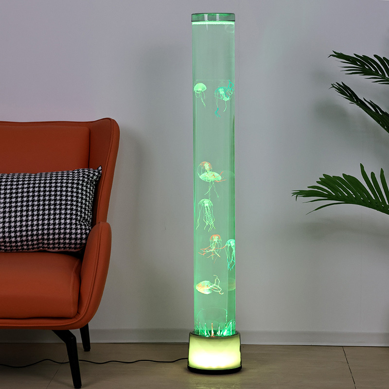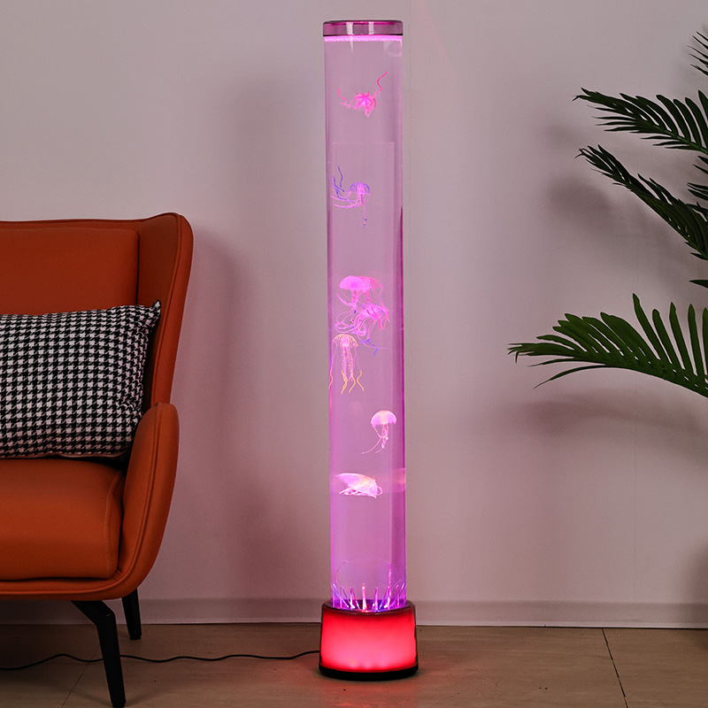 39,5*39,5*115 СМВелика RGB підлогова лампа «Медуза» — це креативний предмет домашнього декору, який поєднує сучасні технології з природною естетикою, має мрійливі світлові ефекти та реалістичні малюнки медуз.