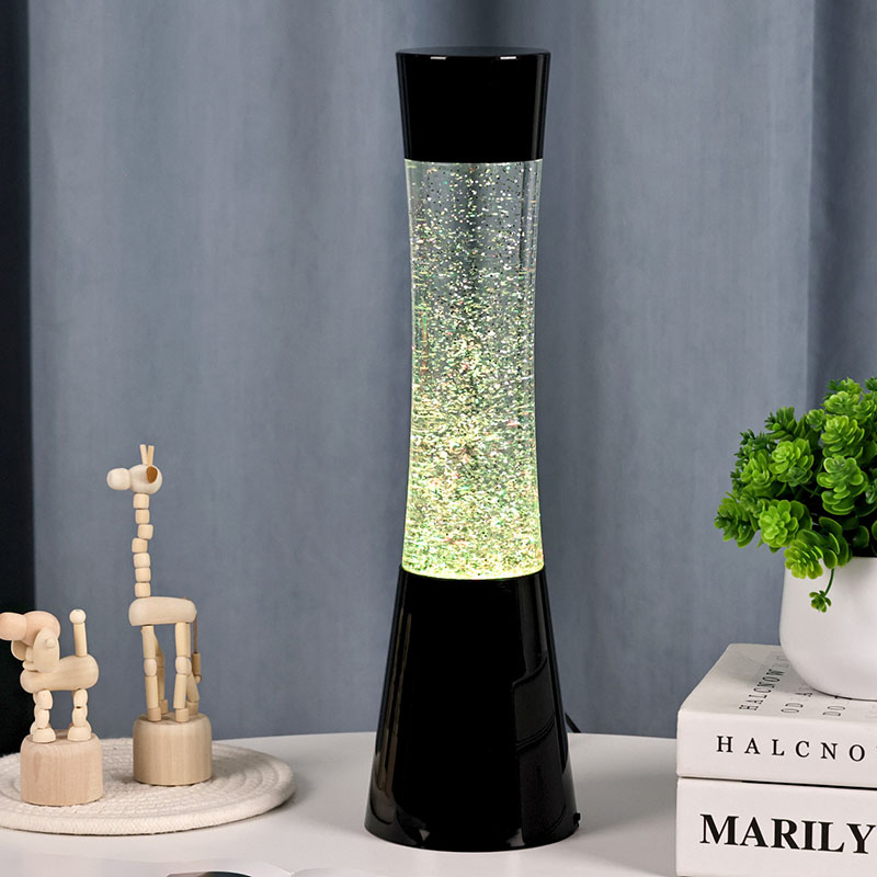 Ще однією особливістю цього маленького нічника є його рідкий і блискучий дизайн всередині. Рідина містить велику кількість блискіток, які яскраво сяють під світлом світла, ніби незліченна кількість зірок мерехтить на нічному небі. Коли рідина тече, блискітки розсипаються нерівномірно, створюючи фантастичний візуальний ефект. Світлодіодна блискуча лава-лампа з батареєю 3AAA також має функцію кольорового освітлення RGB. Завдяки передовій світлодіодній технології освітлювальні прилади можуть випромінювати м’яке та рівномірне світло та вільно регулювати колір світла відповідно до різних сцен та потреб. Ви можете вибрати свій улюблений колір або зробити так, щоб освітлювальні прилади автоматично змінювали кольори, щоб створити барвисте візуальне свято.