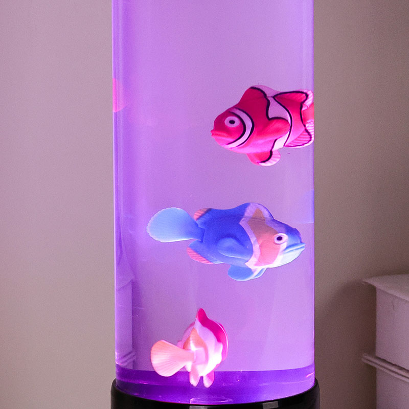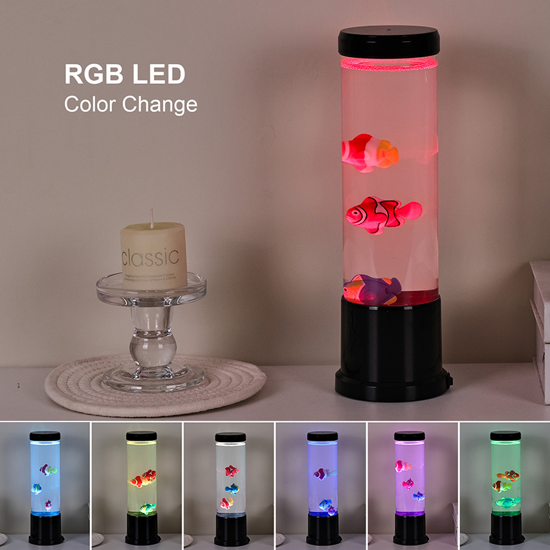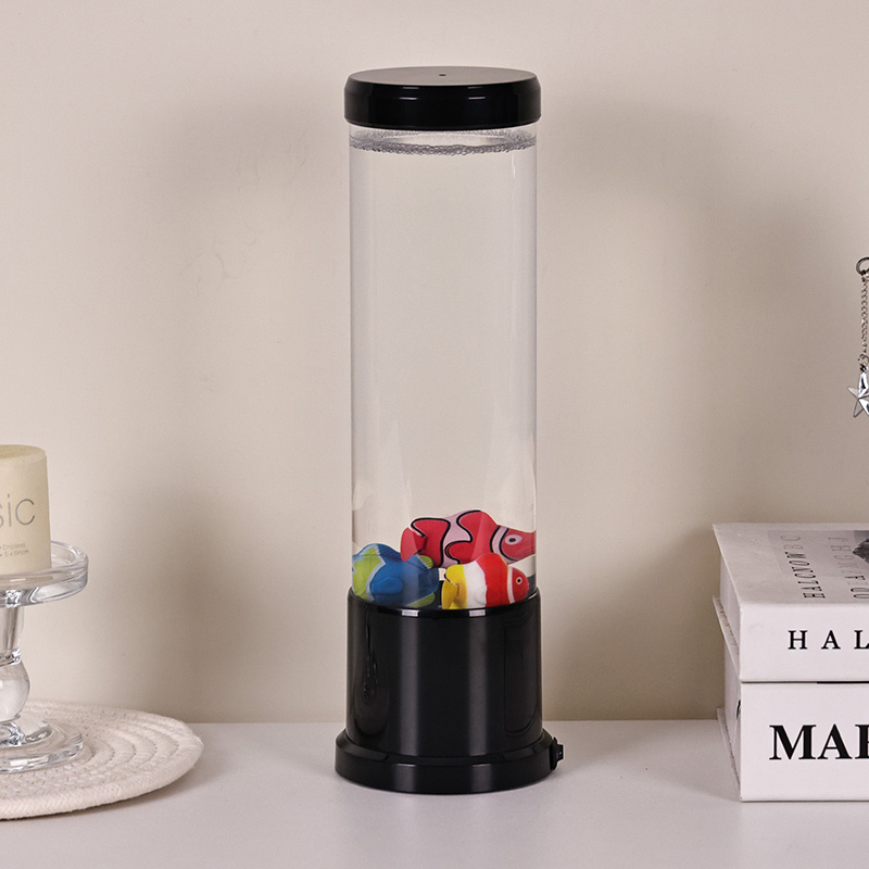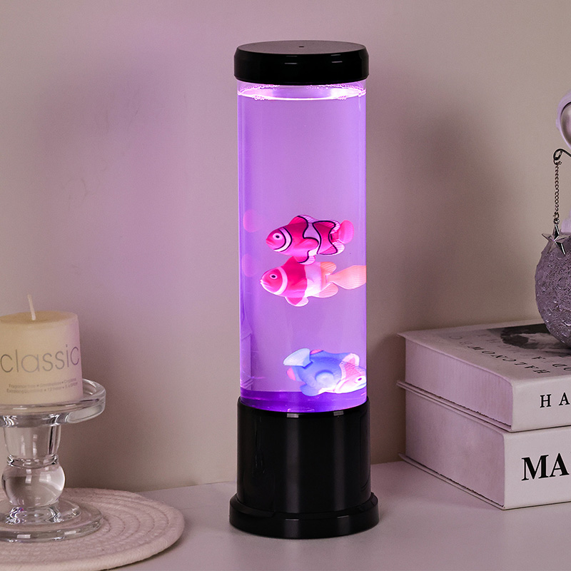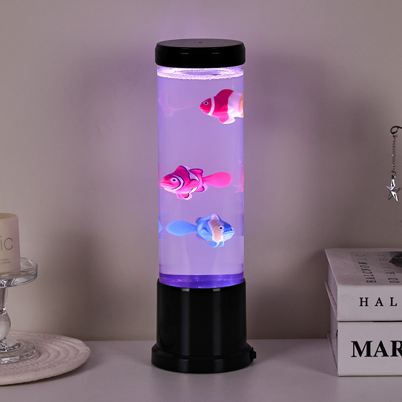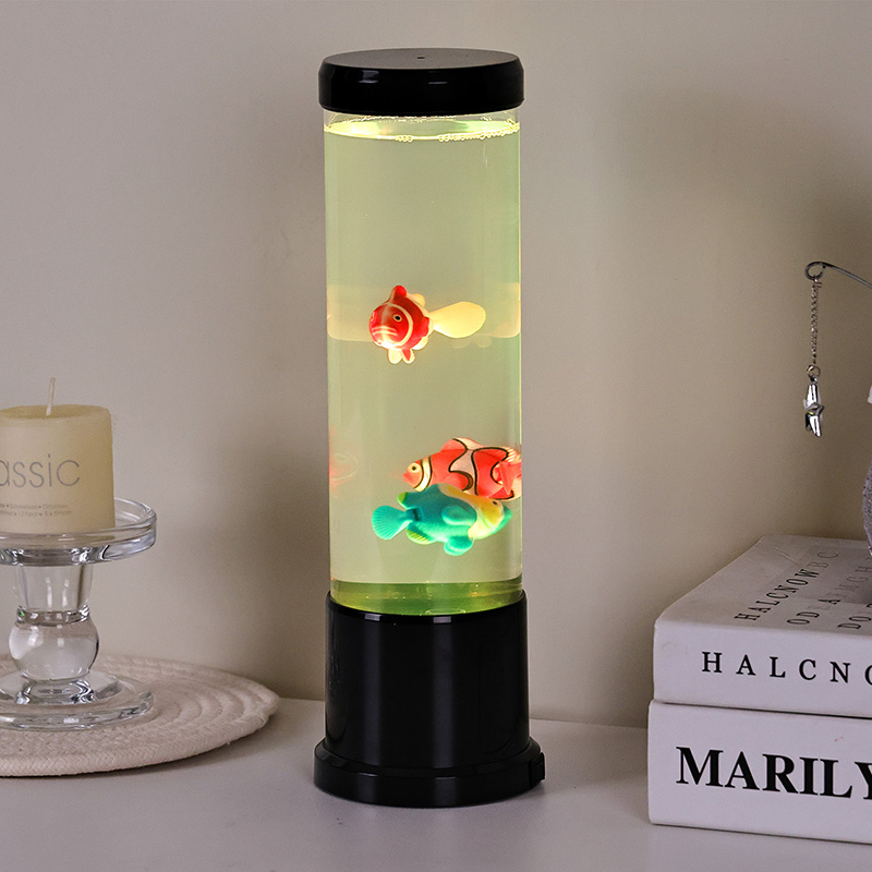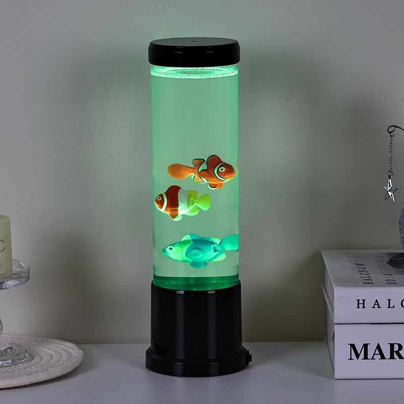 В основі цієї лампи — ретельно продумана імітація справжнього акваріума. Усередині прозорої колони ви знайдете чудово деталізовані плаваючі фігури риб, наприклад, яскравих риб-клоунів та інших тропічних видів, які плавно рухаються та плавають у рідині, схожій на воду. Додавання сяючої медузи посилює чарівну підводну ілюзію, м’яко пульсуючи ефірним світлом. Поєднання руху та кольору створює динамічну сцену, яка привертає увагу та приносить мир у ваше середовище.