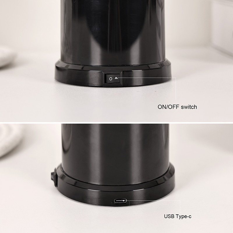 Виготовлена з високоякісного міцного пластику, ця висока чорна лампа має міцну основу, яка запобігає перекиданню, забезпечуючи стійкість на столах, полицях або тумбочках. Прозора центральна трубка стійка до подряпин і легко чиститься, зберігаючи прозорість з часом. Верхня кришка надійно закрита для запобігання витоку, тоді як внутрішні компоненти повністю закриті для безпеки.
