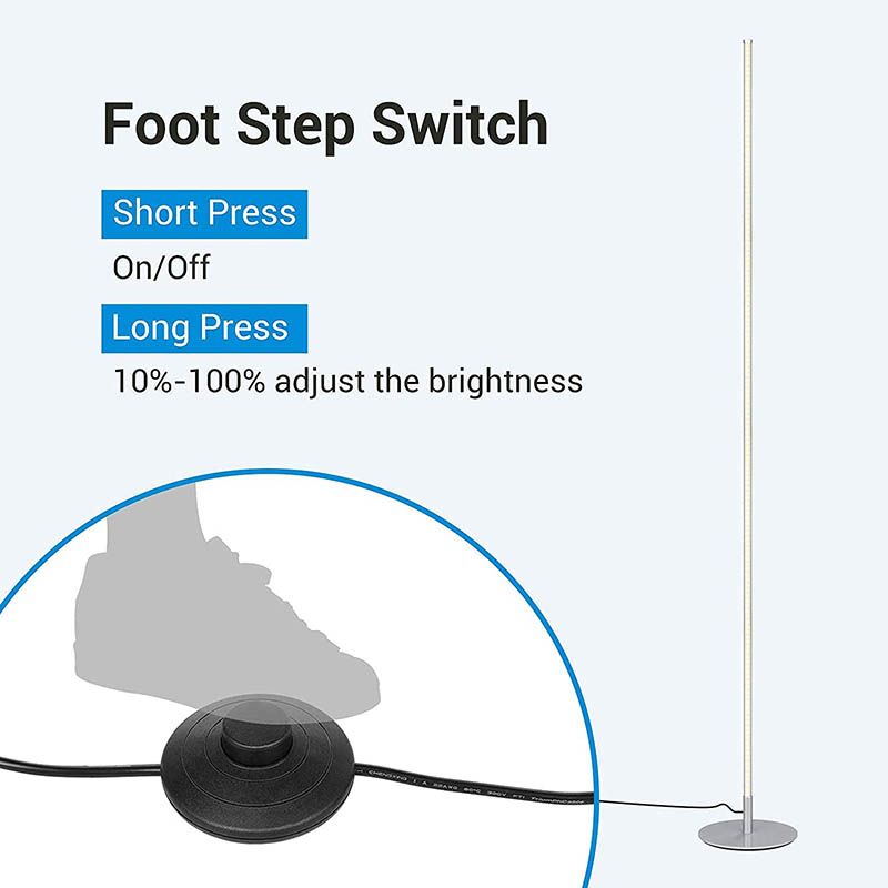 Розроблений із думкою про зручність, наш світлодіодний торшер має ножний перемикач для зручного керування. Просто натисніть на вимикач, щоб увімкнути або вимкнути лампу, що полегшить керування освітленням без необхідності шукати кнопки чи перемикачі. Ця продумана деталь дизайну покращує загальний досвід користувача, гарантуючи, що керування лампою є максимально простим та інтуїтивно зрозумілим.