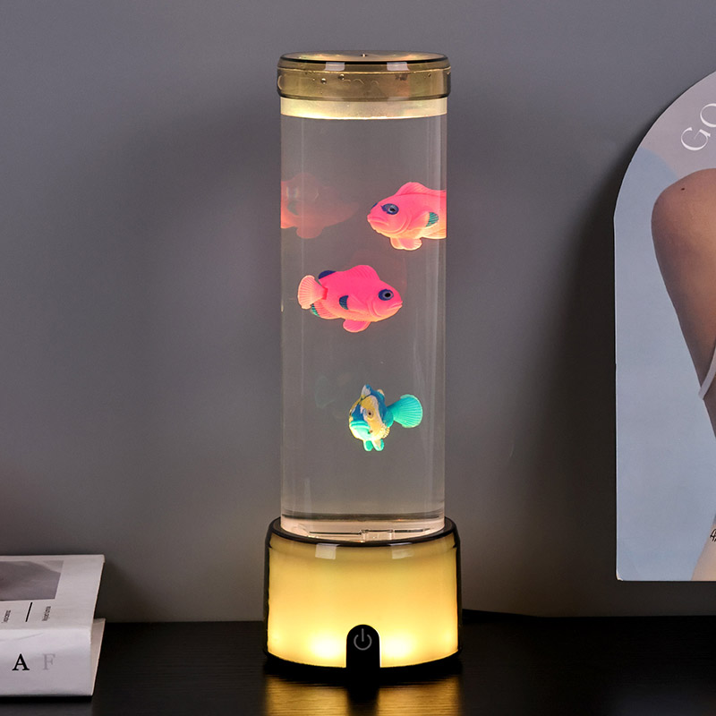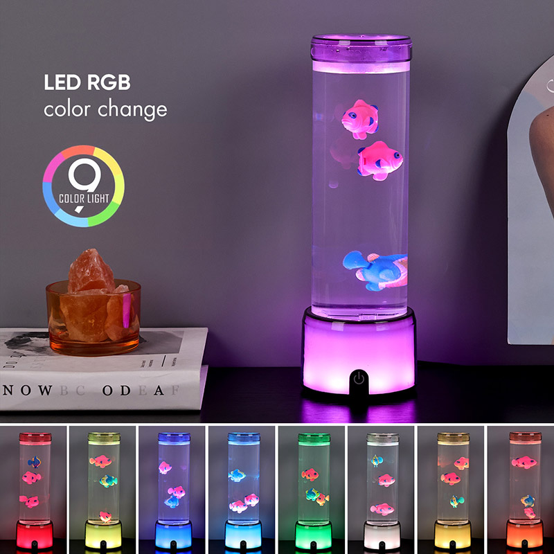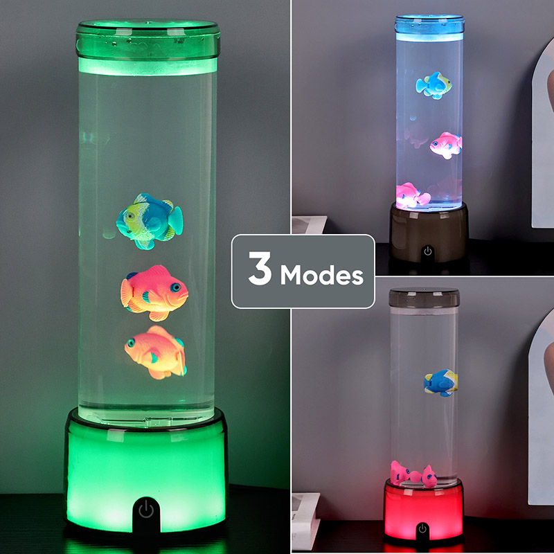 Основа лампи-риби оснащена прозорою основою зі зміною кольору RGB, яка може випромінювати світло кількох кольорів, створюючи барвистий ефект усього корпусу лампи. Колір після включення вимикача