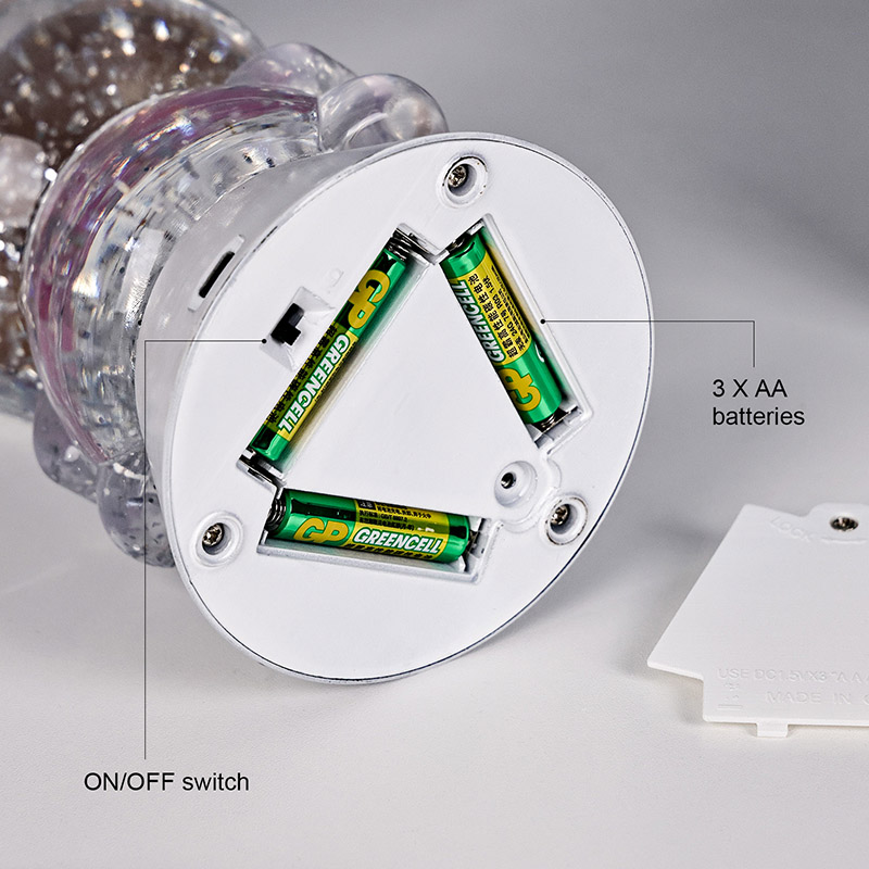 Блискуча настільна лампа RGB із відтінком свині має просту та елегантну білу основу в нижній частині, яка не лише покращує загальну естетичність, але й покращує стабільність, щоб уникнути перекидання. База містить внутрішній батарейний відсік, куди користувачі можуть легко встановити три батареї AAA (не входять у комплект). Не потребуючи підключення до розетки, він забезпечує портативність і ідеально підходить для розміщення біля ліжка, письмового столу, ліжечка або під час подорожі. Конструкція перемикача зручна для користувача, що дозволяє легко вмикати/вимикати його простим дотиком, що робить його безпечним і простим у користуванні — особливо підходить для самостійного використання дітьми.