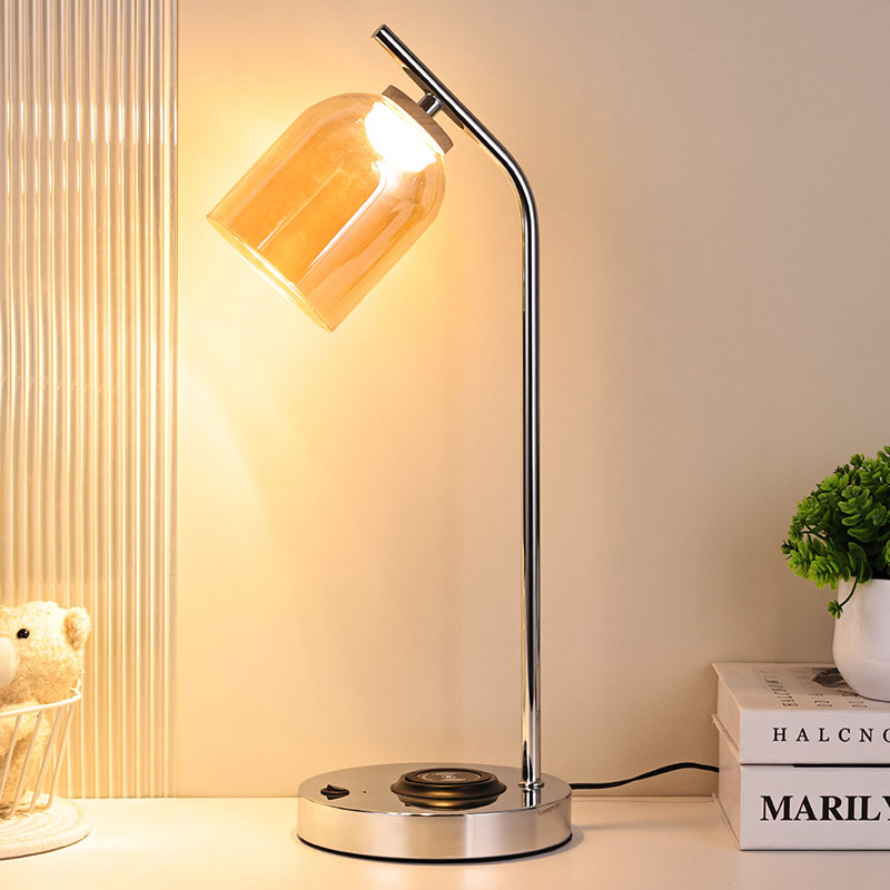 Настільна світлодіодна лампа QI зі скляним абажуром, виготовлена з розкішного скляного абажура