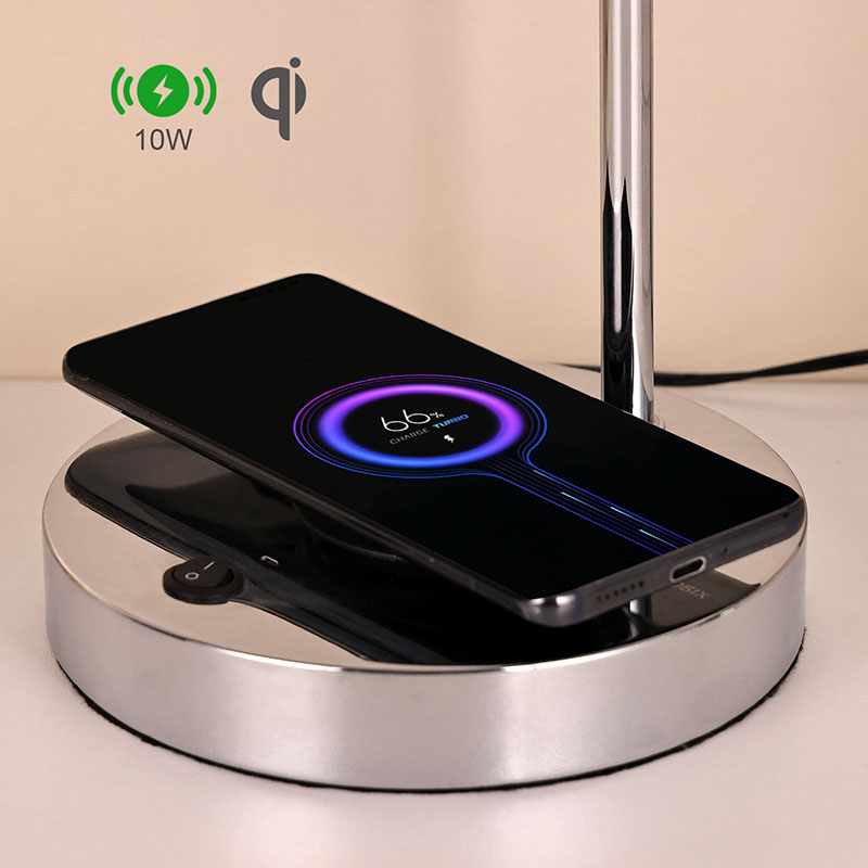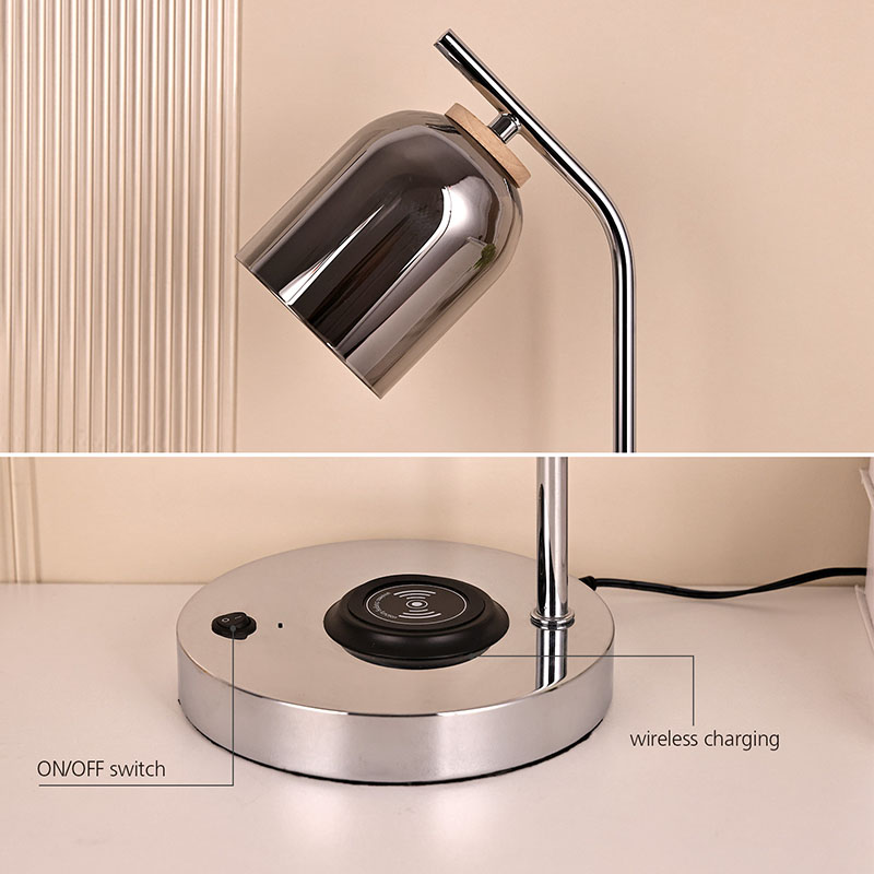 Настільна світлодіодна лампа QI зі скляним плафоном має сертифікат бездротового зв’язку QI. Бездротовий зарядний пристрій 5V1A для телефону на основі
