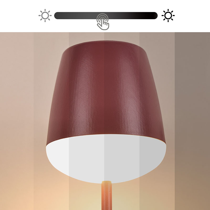Настільна світлодіодна лампа зі скляним абажуром Red wine оснащена зручною системою живлення від акумулятора, що означає, що вам більше не доведеться турбуватися про пошук розетки. Незалежно від того, чи читаєте ви тимчасово на дивані у вітальні, чи створюєте теплу атмосферу під час нічного походу на відкритому повітрі, просто обережно вставте батарею, і вона одразу засвітиться, приносячи вам яскравість