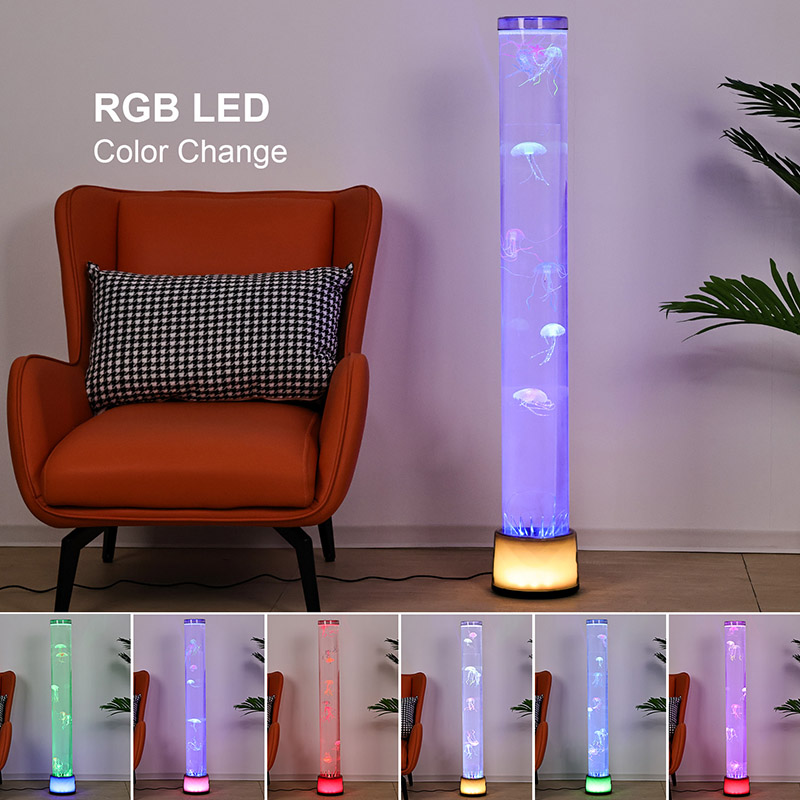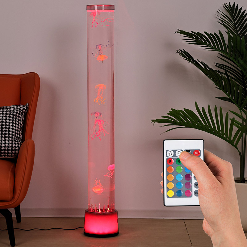39,5*39,5*113 СМRGB підлогова лампа «Медуза» — це креативний предмет домашнього декору, який поєднує сучасні технології з природною естетикою. Завдяки своїм мрійливим ефектам світла та тіні та реалістичному дизайну медузи він додає таємничу та спокійну океанську атмосферу внутрішнім просторам. Весь дизайн виготовлено з високопрозорого акрилу, має струнку та елегантну форму, яка нагадує мініатюрний підводний світ, занурюючи вас так, ніби ви перебуваєте глибоко під морем.