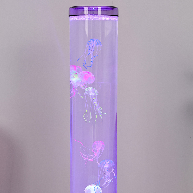 Усередині корпусу лампи ретельно розташовано кілька моделей біонічних медуз. Під ніжним світлом світлодіодних ліхтарів вони повільно дрейфують і витончено погойдуються. У поєднанні з інтелектуальною системою зміни кольорів освітлення можна регулювати з часом або вручну, відображаючи градієнт фіолетового, синього, зеленого, рожевого, жовтого тощо, створюючи неймовірне візуальне враження. Унікальний дизайн нижнього джерела світла не тільки забезпечує освітлення, але й покращує загальне відчуття шарів світла та тіні, роблячи контури медузи більш динамічними та красивими.