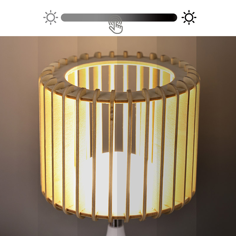 Створена з точністю світлодіодна настільна лампа нового дизайну має гладкий і елегантний дизайн із міцних пластикових матеріалів. Абажур виготовлено з планок натурального дерева, що створює візуально вражаючий і сучасний вигляд. Незалежно від того, поставите ви його на робочий стіл, тумбочку чи будь-яку іншу поверхню, ця лампа обов’язково захопить і порадує.