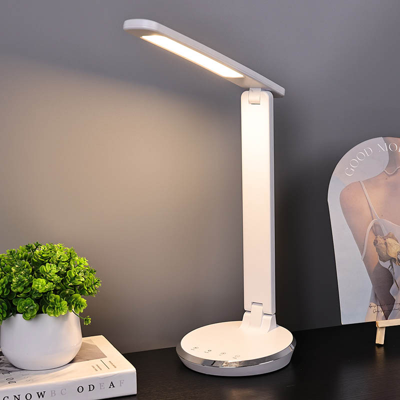 Представляємо **LumiFold**, революційну складану настільну лампу, яка поєднує в собі елегантний дизайн, передову функціональність і неперевершену зручність. Виготовлений із високоякісного білого пластику, цей мінімалістський шедевр створений, щоб покращити ваше робоче місце, спальню чи вітальню за допомогою **витонченої естетики та розумної технології освітлення**.
