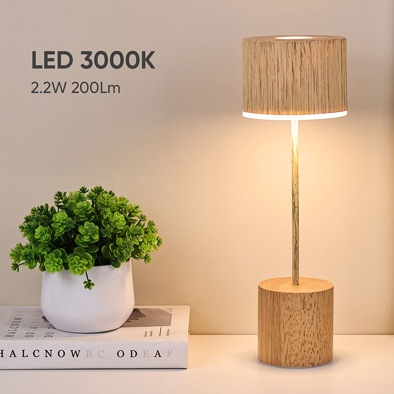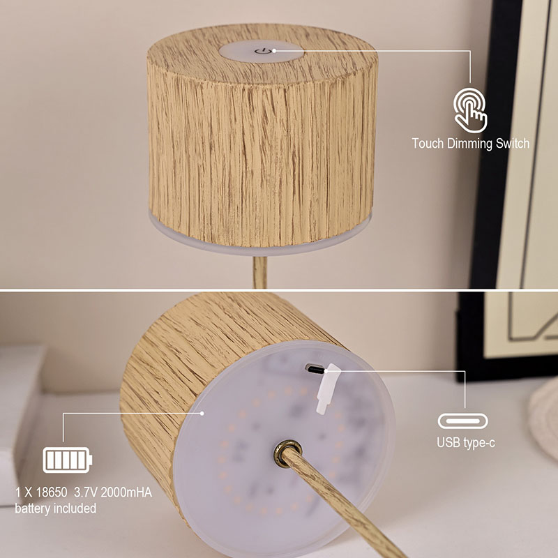 Для вашої зручності дерев'яна світлодіодна настільна лампа з акумулятором також оснащена акумуляторною батареєю. Вам потрібно лише підключити його до розетки для заряджання, і ви зможете насолоджуватися достатнім освітленням будь-коли та будь-де. Будь то аварійне освітлення під час відключення електроенергії або портативні джерела світла для активного відпочинку, дерев'яна світлодіодна настільна лампа з акумулятором може забезпечити вам надійний захист. Крім того, конструкція вбудованої батареї також робить настільну лампу легшою та портативнішою, що полегшує її переміщення та розміщення